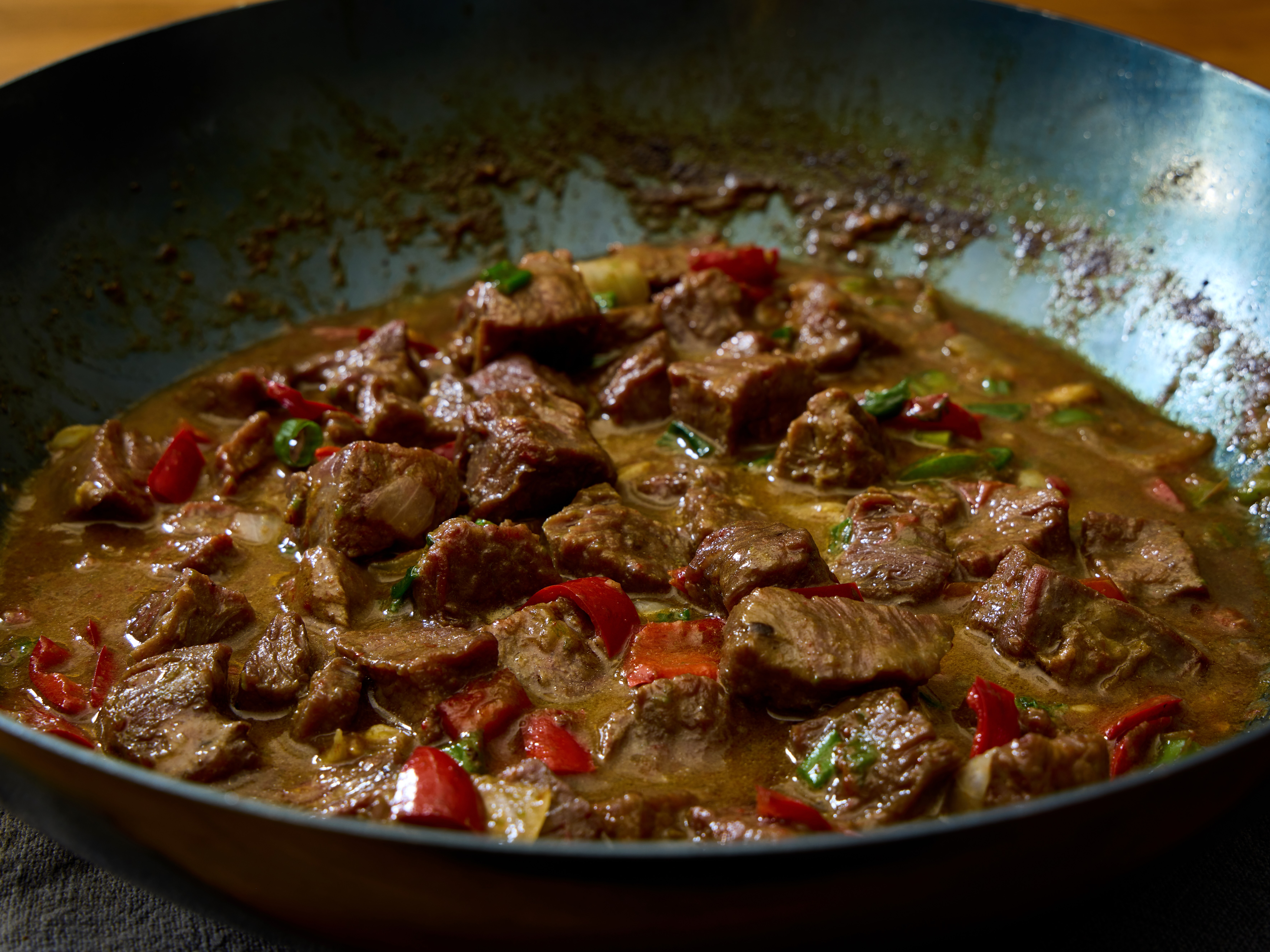 A Chinese-American stir-fry made with tenderized flank steak that is coated, marinated, and quickly cooked with aromatics and vegetables in a savory oyster sauce.