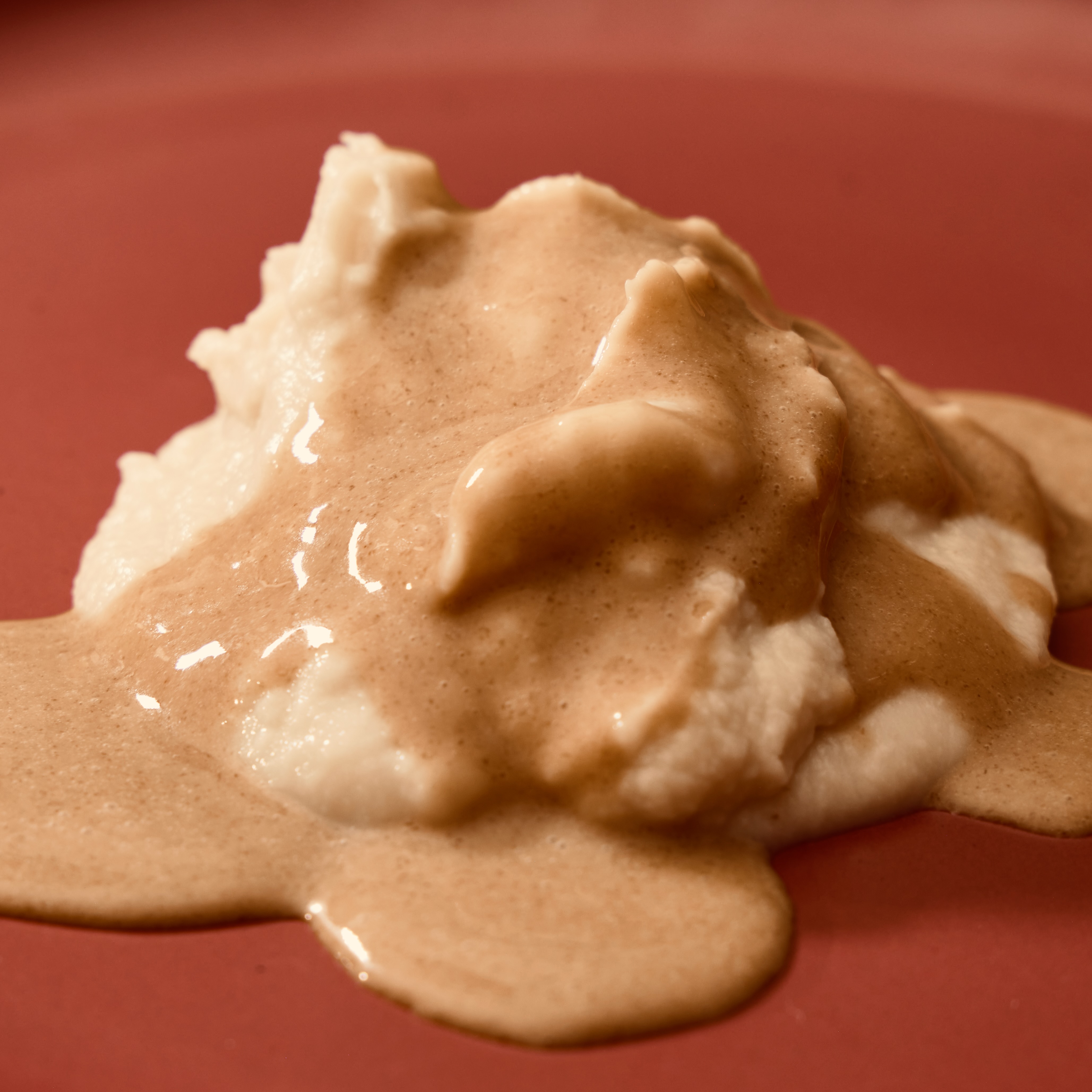 A simple, deeply savory beef gravy, with none of the usual flour. Soy sauce and umami ingredients add depth.