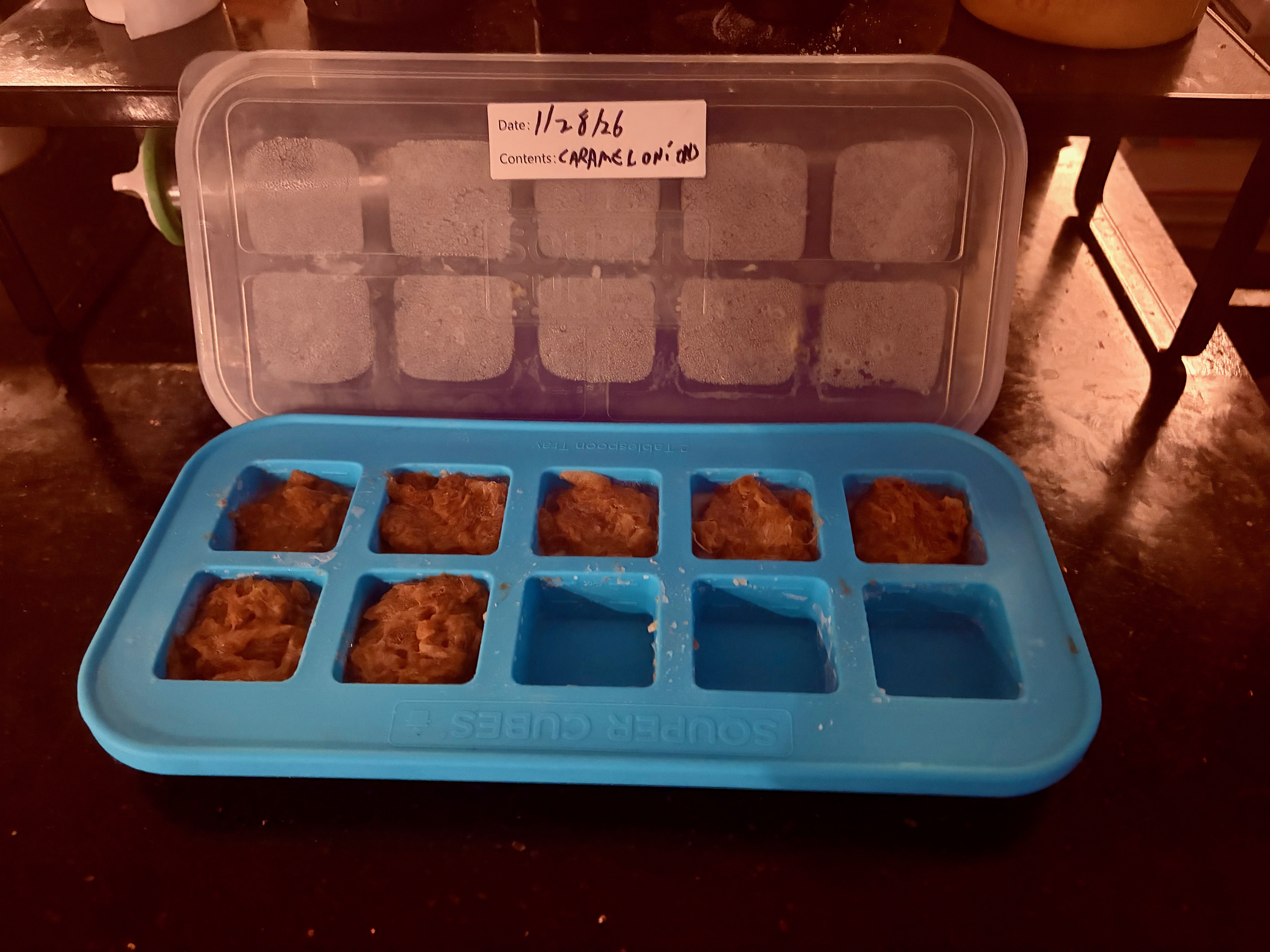 - Portion into small containers or silicone molds like Kitchen Essentials: Souper Cubes (1–2 tablespoons per portion is ideal).